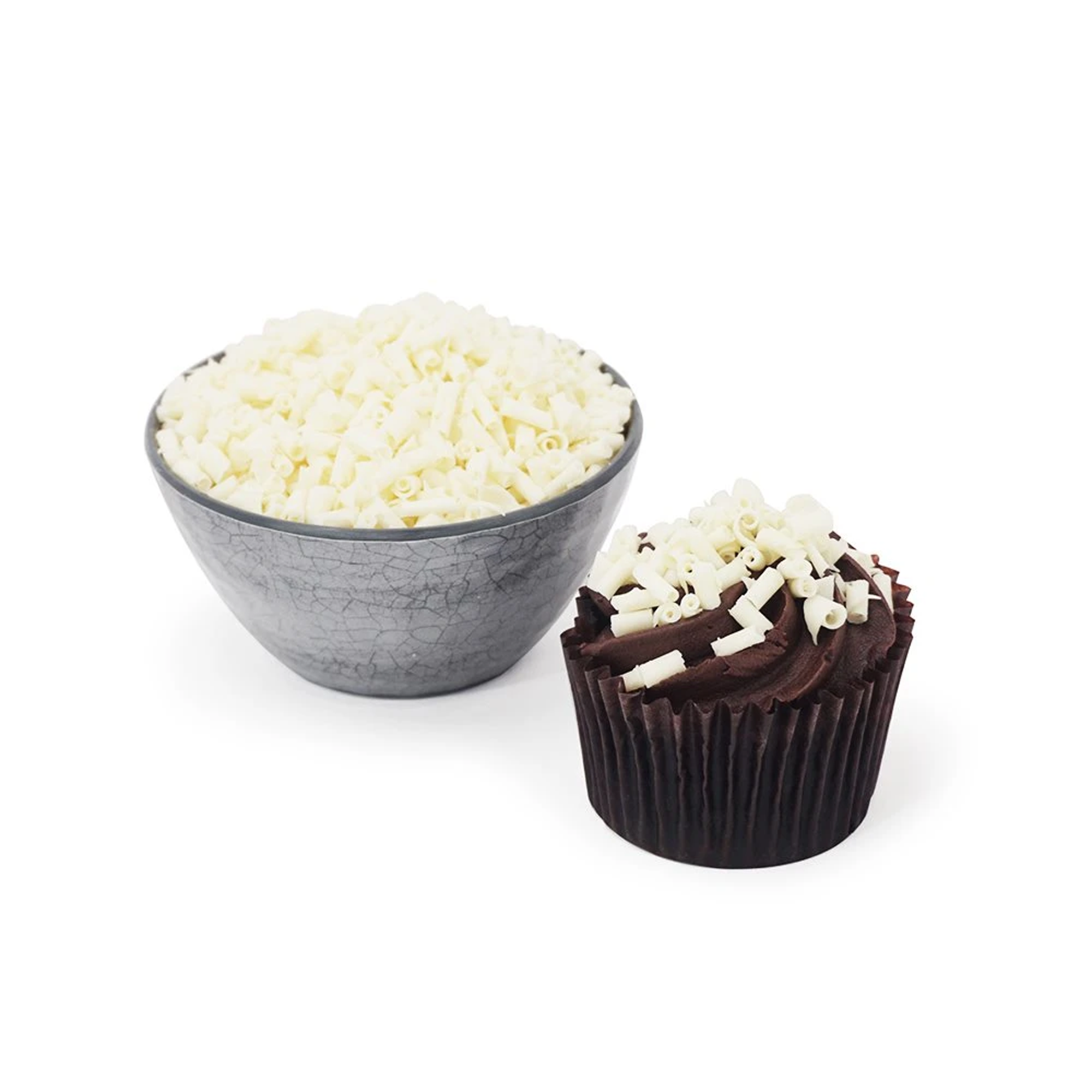 White Curls are delicate, bite-sized rolls of smooth white chocolate, offering a creamy, milk-infused flavor in every bite. These tiny curls melt effortlessly on your tongue, adding a touch of sweetness and richness to any treat. Perfect for topping off cakes, ice cream, or pastries, they bring a delightful finishing touch to your desserts. For a truly indulgent experience, sprinkle them over drinks topped with marshmallows or whipped cream, and let them gently melt away, creating a luscious, creamy finish with every sip.