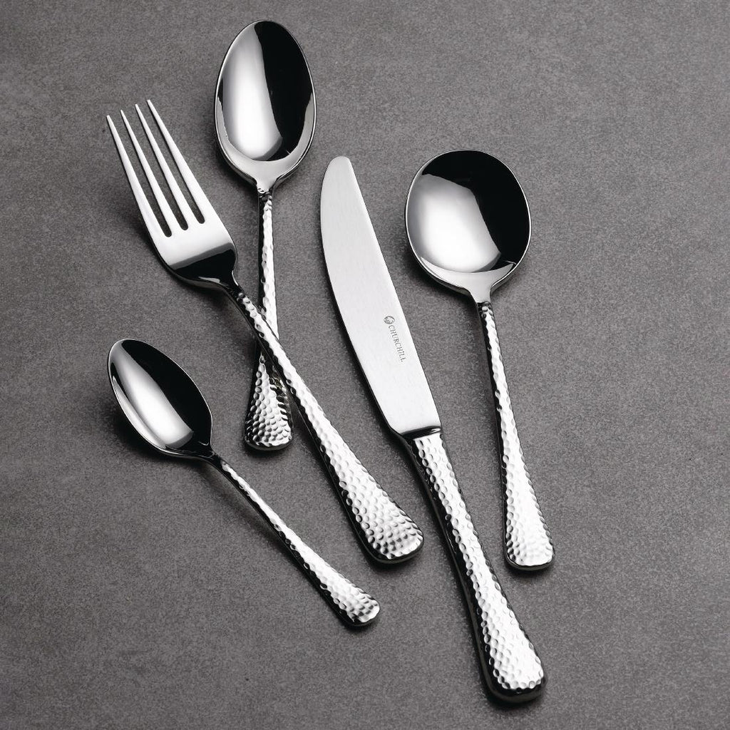 18/10 cutlery with a dappled embossement on the handle. Inspired by shapes found on the shoreline, making it ideal for tying together dishes with a coastal theme. Designed to pair with Churchill's Isla crockery collection