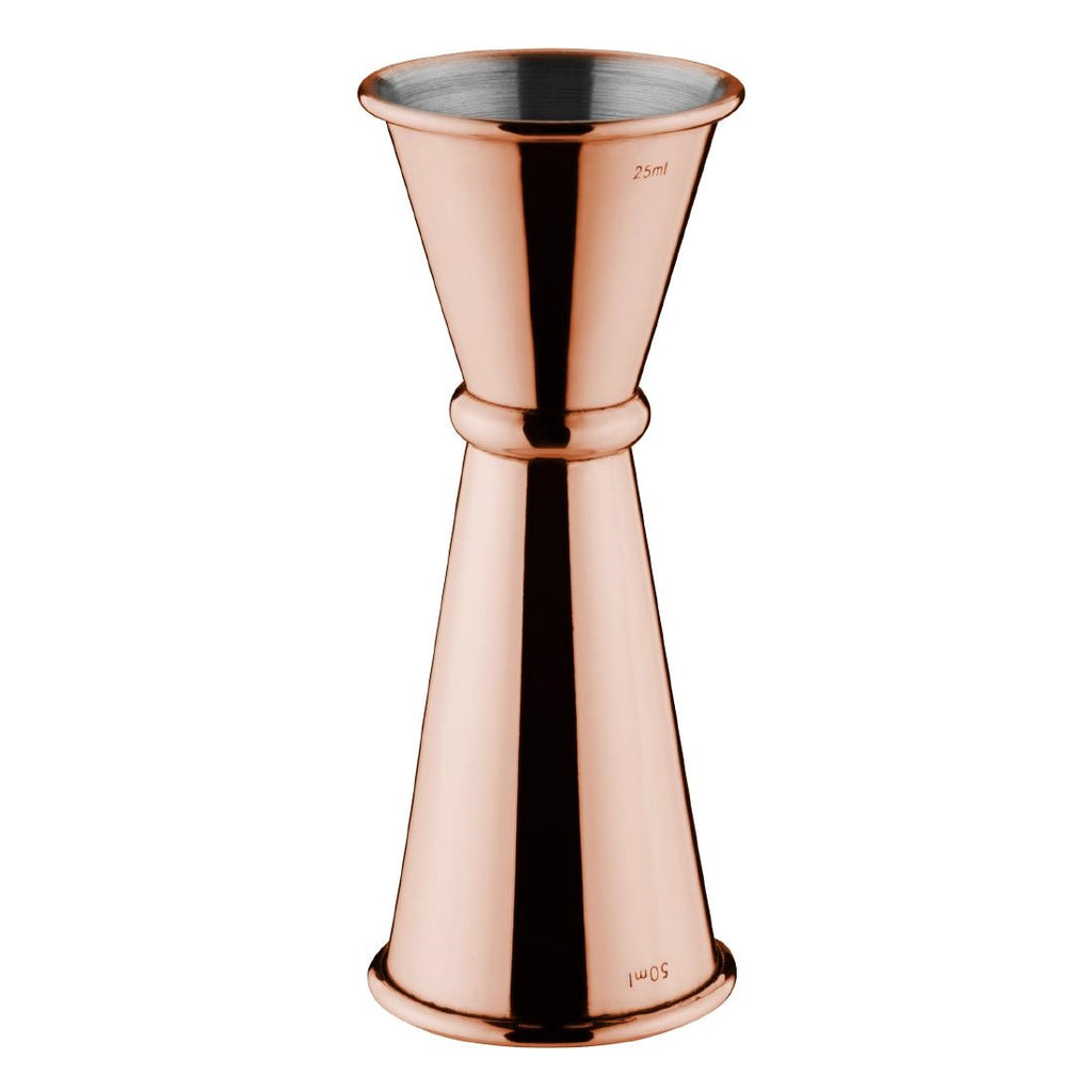 Measure shots consistently with this copper banded jigger from Olympia. As the measurer is double-ended, your bar will be equipt to pour double and single shots - to make drinks just how your customers like them.